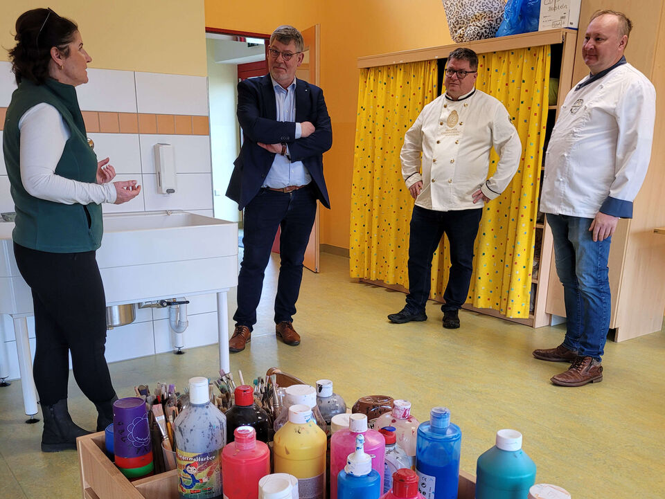 „Unsere Kinder lieben es, mit Wasser zu experimentieren“, erklärte Kita-Leiterin Antje Huyer den Besuchern Karsten Liebscher, René Buschmann und Jens-Thorsten Jacob. Beim Abfüllen, Umgießen, Einfärben, Aufteilen und Ausgießen können die Kinder Mengenlehre, Stoff-Eigenschaften, Auftrieb, Strömung und Schwerkraft austesten und dabei viel lernen. Bisher mussten sie diese Experimente in ihren Gruppenräumen vornehmen – mit entsprechenden Spuren auf Tisch und Boden.
