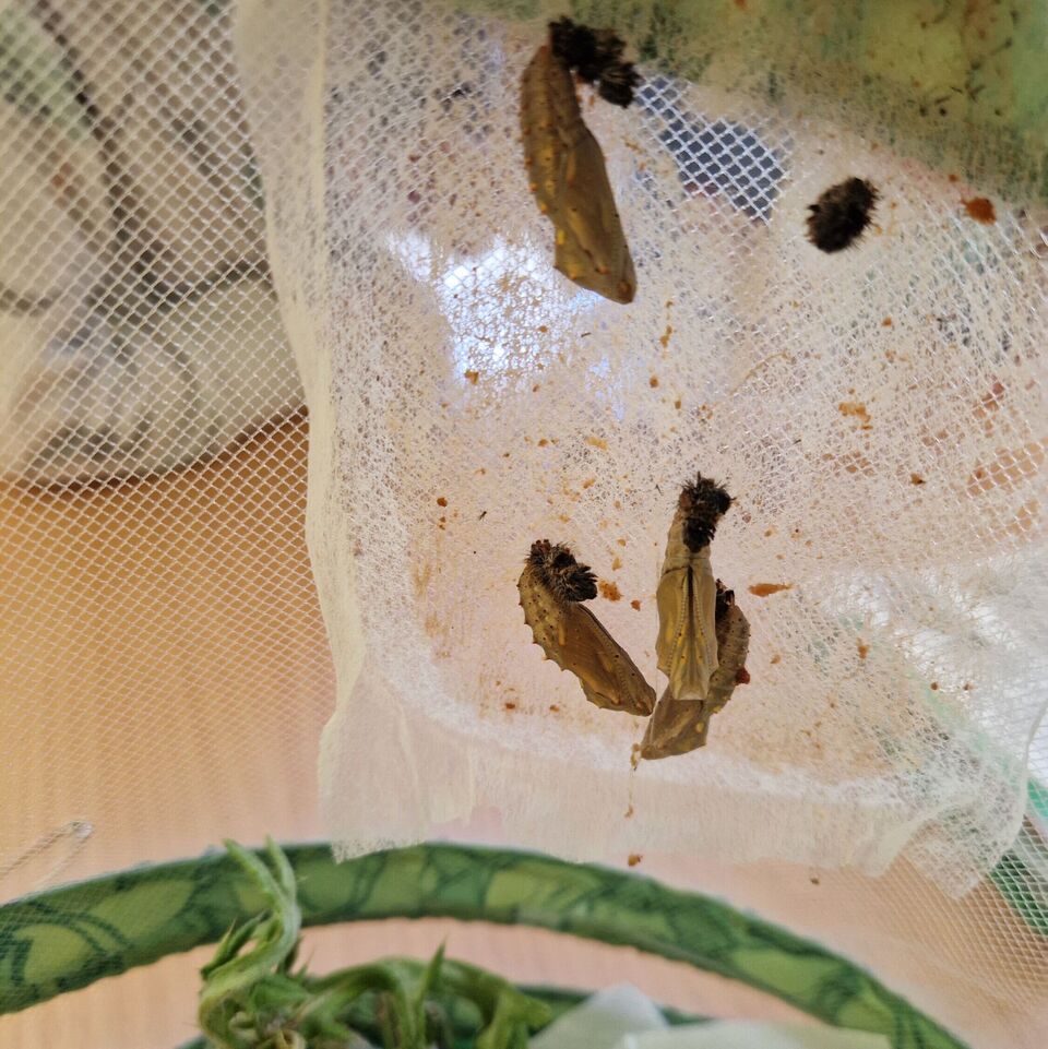Wir alle stellten fest, dass es in der Voliere viel zu eng für Schmetterlinge ist. Nun kam der Abschied. Nach drei Tagen versuchten wir, sie ins Freie zu entlassen, aber sie wollten noch nicht. Erst am nächsten Tag – einem wunderschönen sonnigen Tag – breiteten sie nacheinander ihre Flügel aus und flogen in ihre Freiheit.