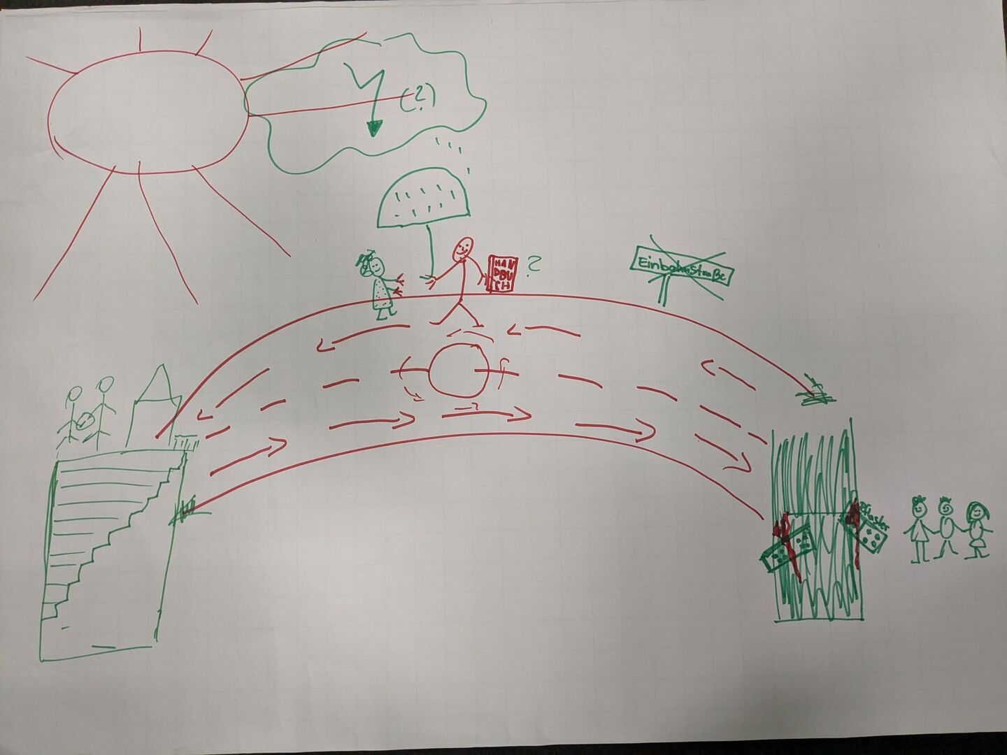 Raus aus der Schule und rein ins Auf und Ab der Praxis: In einem kleinen Kennlernspiel gestalteten wir in 2er-Teams auf kreative Art, ohne uns zu kennen und miteinander zu reden, eine Brücke zwischen der Theorie und Praxis, welche wir im Anschluss gemeinsam betrachteten und erklärten.