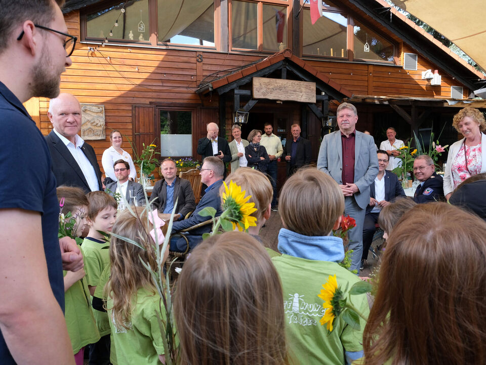 Mit mehreren Liedern und vielen bunten Blumen bereiteten die Mädchen und Jungen dem Stadtoberhaupt eine Freude. Kinderarche-Vorstand Matthias Lang übergab ein riesengroßes Pfefferkuchenherz und bedankte sich beim OB, dass dieser immer ein großes Herz für Kinder habe.