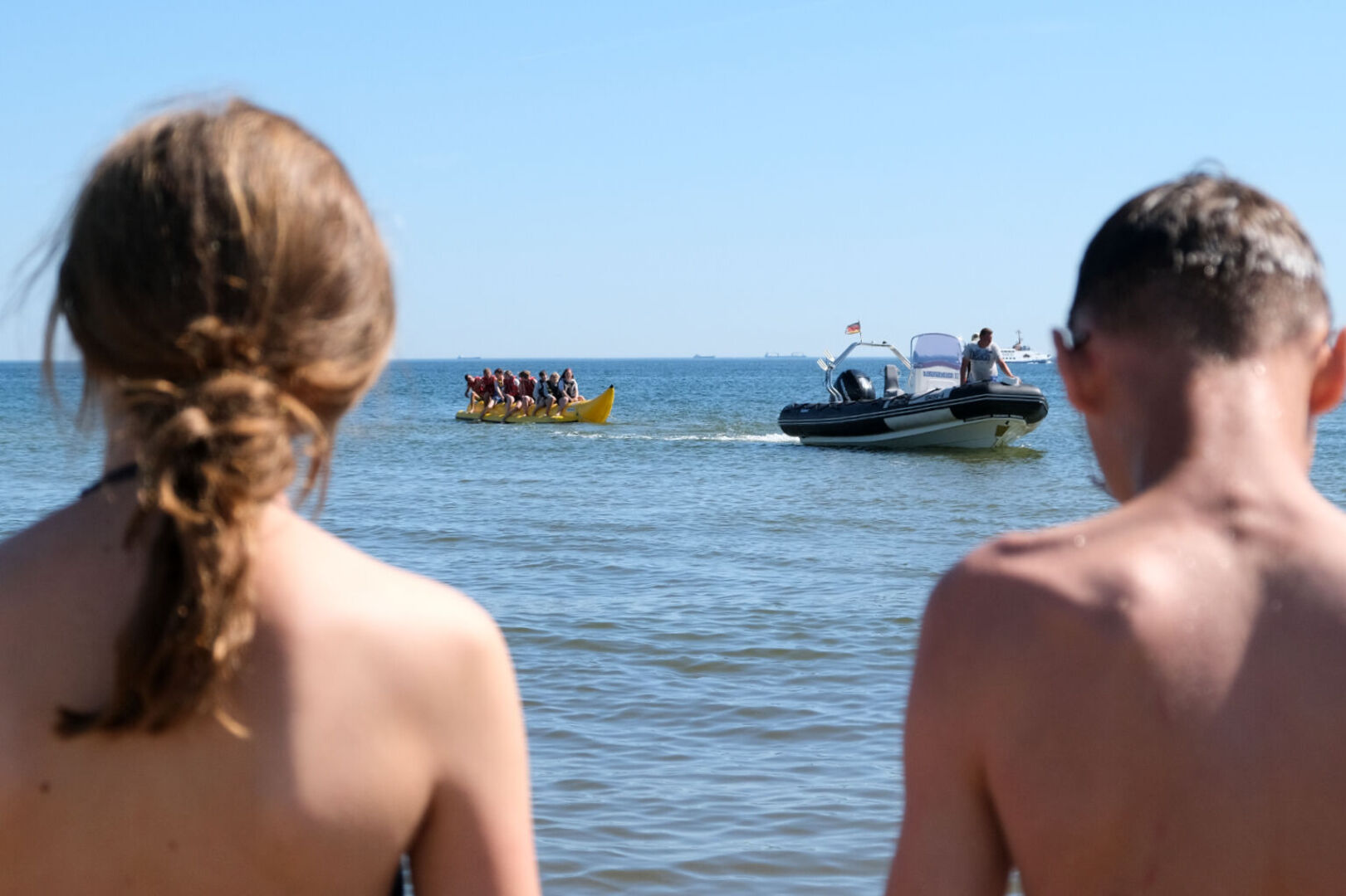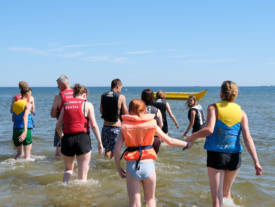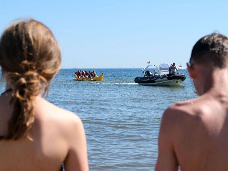 Heute feiern wir Halbzeit auf unserer Herzenssache-Ferienfahrt nach Usedom und das gleich mit zwei Highlights: Von 10 bis 14 Uhr waren alle Kinder, die schwimmen können, zu einem echten Abenteuer eingeladen. Sie durften eine Runde auf dem Banana-Boot durchs Wasser flitzen, beabsichtigte Stürze ins Wasser inklusive. Wir danken herzlich unserem langjährigen Spender Ingolf Nöbel von der Hoch- und Tiefbau Reichenbach GmbH, der die kompletten Bananaboot-Fahrten für unsere Kids finanziert hat, um ihnen noch ein extra Geschenk auf der Ferienfahrt zu machen.