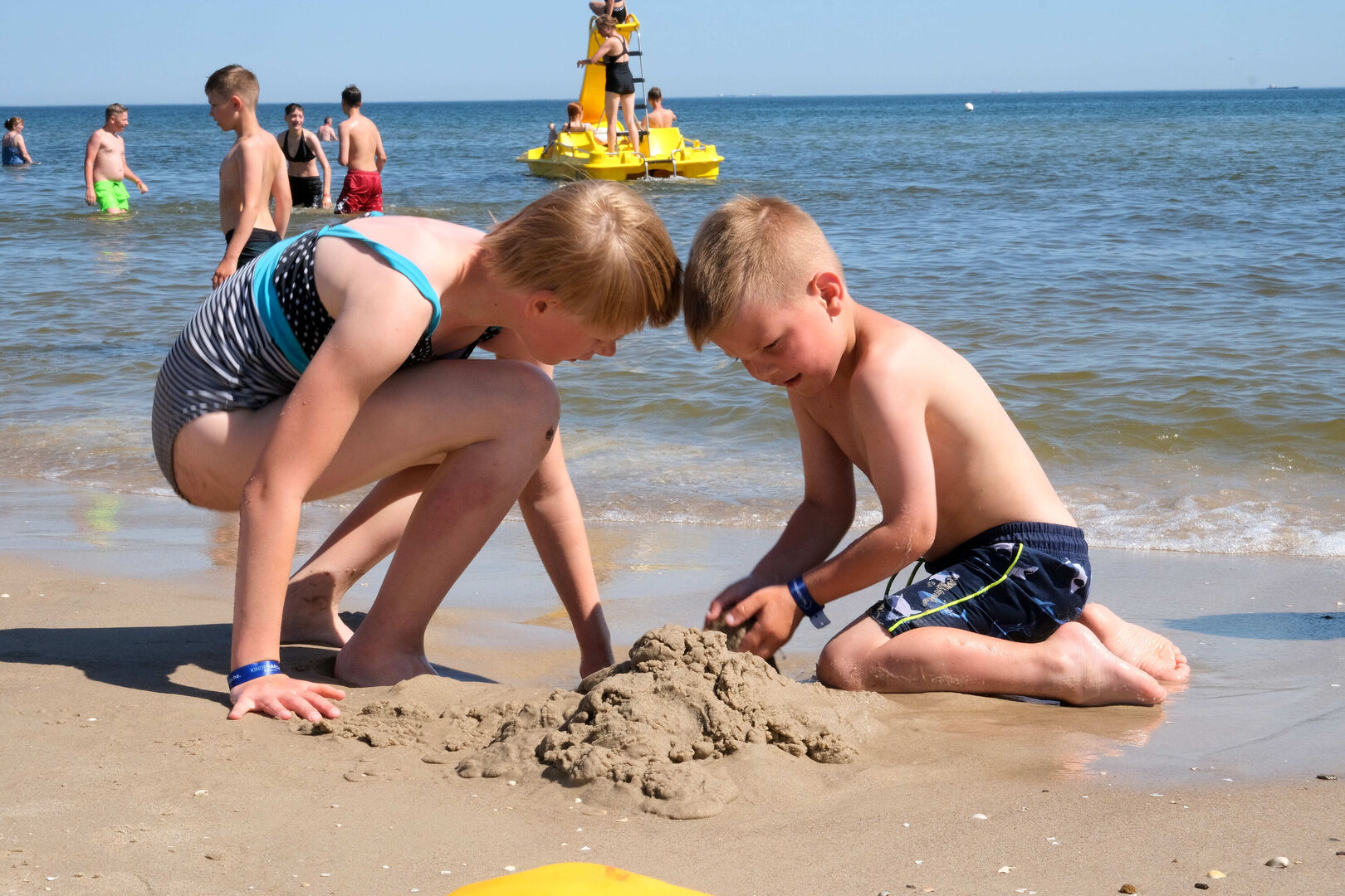 Die Nicht-Schwimmer vergnügten sich in der Zeit bei bestem Wetter am Strand und im Wasser und nutzten ausgiebig das Trampolin, das wir ebenfalls kostenfrei nutzen durften.
