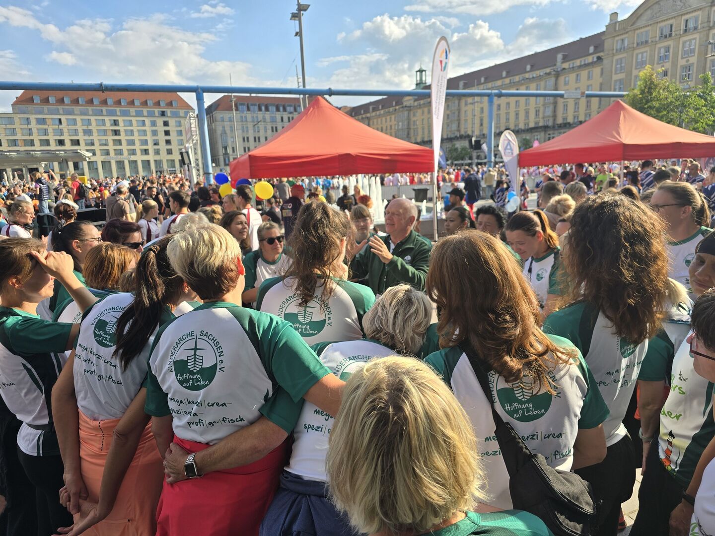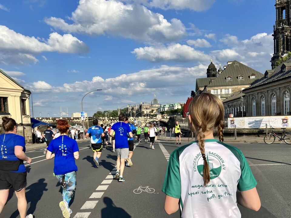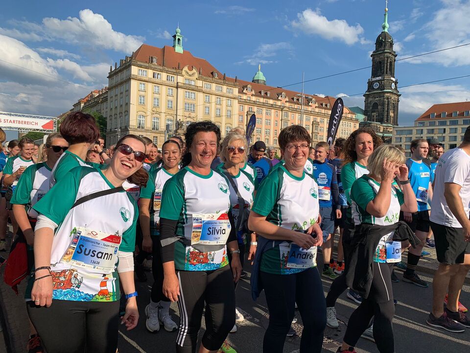 Bei traumhaftem Laufwetter und bester Stimmung fiel um 18.30 Uhr der Startschuss für die VSB-Welle und damit für unsere elf Kinderarche-Teams. Zusammen mit 28.500 Läuferinnen und Läufern auf die Strecke durch die Dresdner Altstadt zu gehen, das ist einfach ein unglaubliches Erlebnis! Beim 5-Kilometer-Lauf vom Kulturpalast bis ins Rudolf-Harbig-Stadion zählt vor allem der Teamgedanke – gemeinsam an der Startlinie stehen, die Stimmung genießen und dann überglücklich seine Medaille umgehängt zu bekommen.