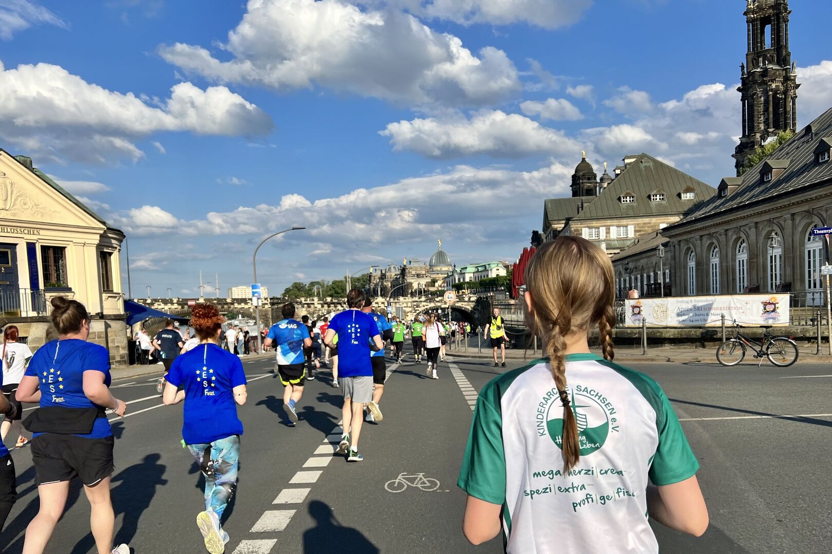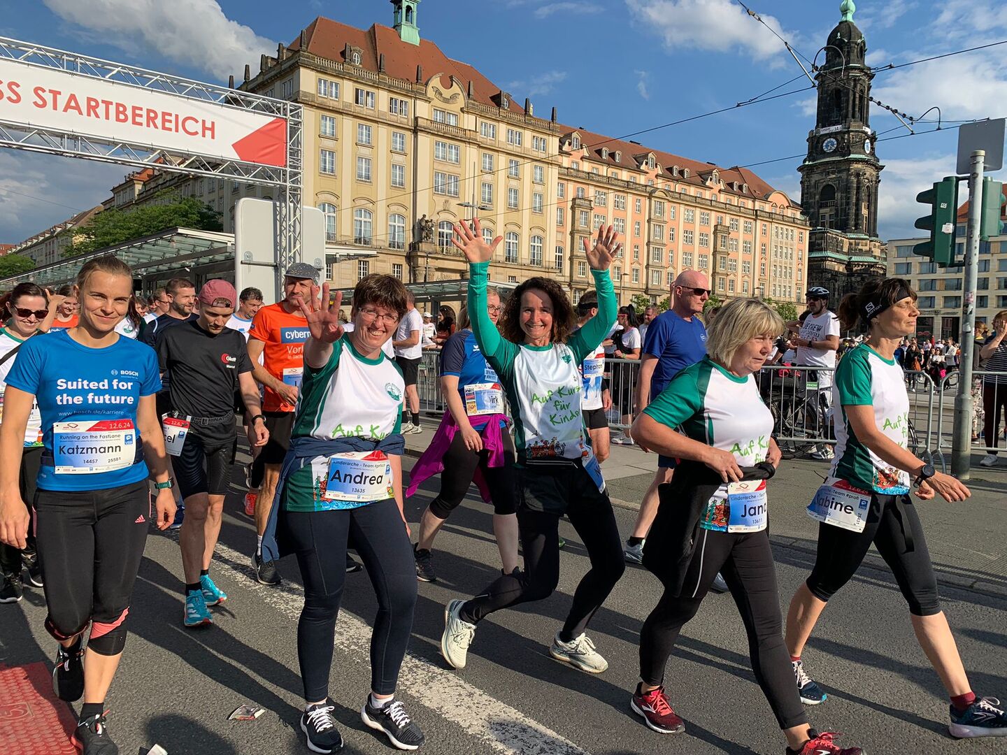 Insgesamt 44 Läuferinnen und Läufer aus der Verwaltung, Kitas, Familienhilfe und Wohngruppen der Kinderarche Sachsen starteten am Abend des 12. Juni in der Dresdner Altstadt zum größten Firmenlauf Ostdeutschlands.