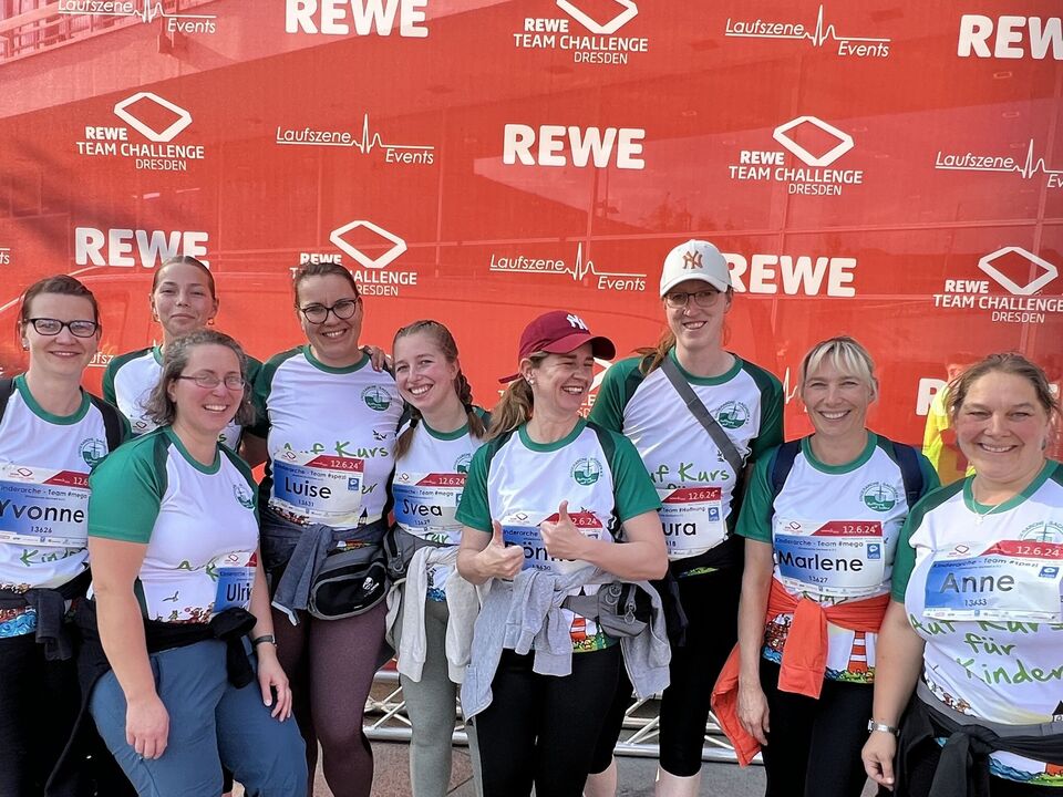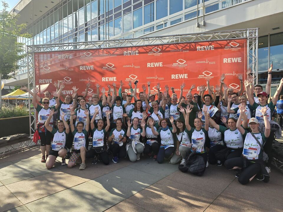 Nach 16 Starterinnen im vergangenen Jahr haben wir zur 15. REWE Team Challenge in diesem Jahr einen neuen Rekord aufgestellt: Insgesamt 44 Läuferinnen und Läufer aus der Verwaltung, der Wach‘schen Villa, EFB und IFB, der Kita „Riesenzwerge“, dem Naturkinderhaus Mulda, dem „Haus Kleeblatt“ Kamenz und dem Kinder- und Jugendheim Crimmitschau starteten am Abend des 12. Juni in der Dresdner Altstadt zum größten Firmenlauf Ostdeutschlands.