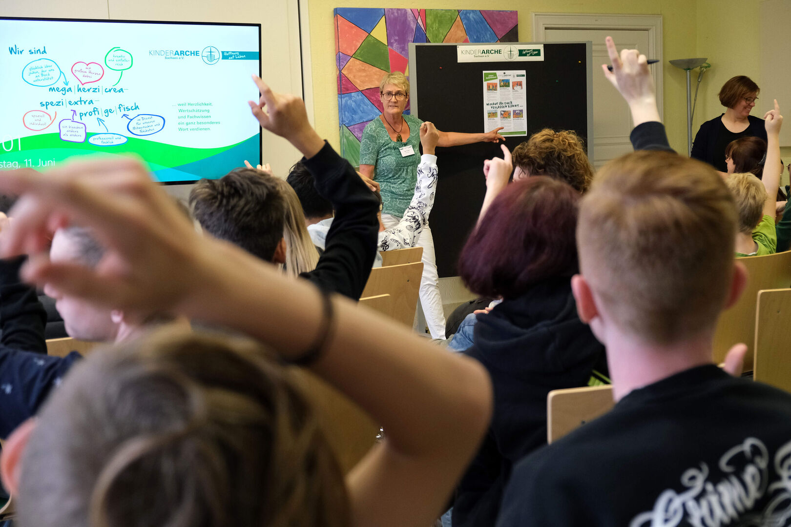 Kurz vor Beginn der Sommerferien hat sich die Kinderarche-Geschäftsstelle in Radebeul am Dienstag in einen summenden Bienenstock verwandelt. Etwa 40 Gruppensprecherinnen und Gruppensprecher aus allen Wohngruppen des Vereins waren zu ihrem jährlichen Treffen zusammengekommen, um sich zu wichtigen Themen ihres Lebens in einer Wohngruppe auszutauschen.