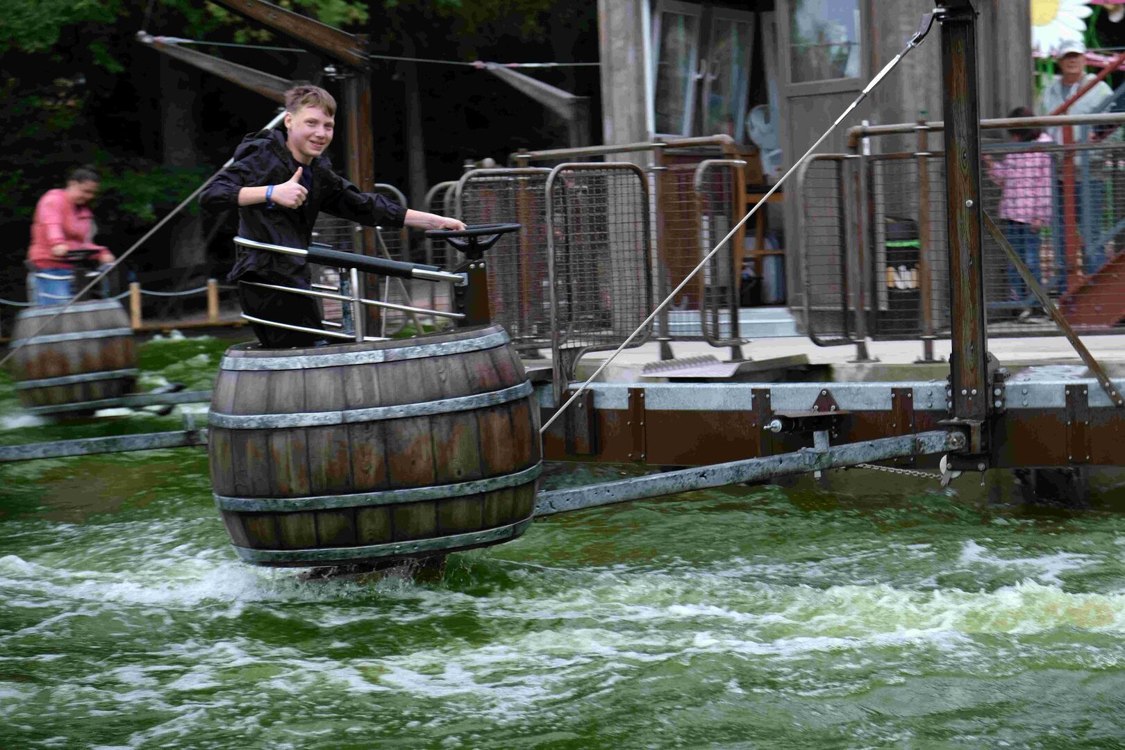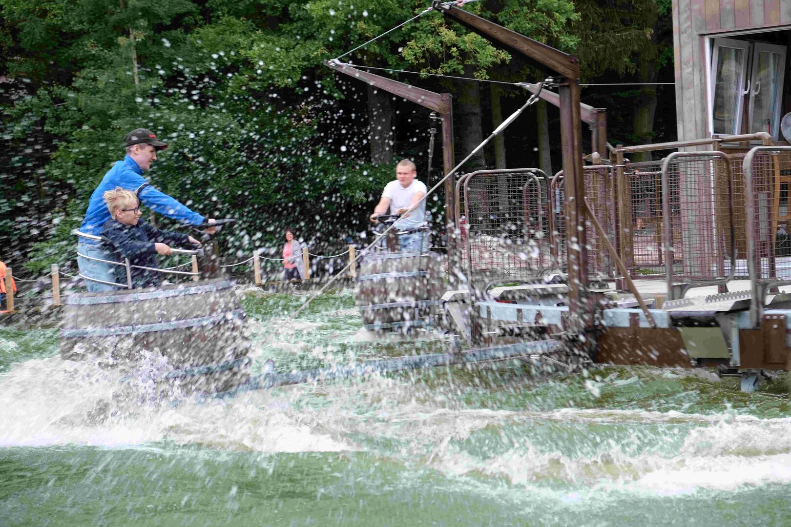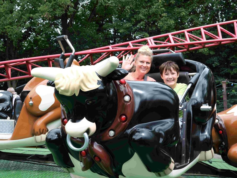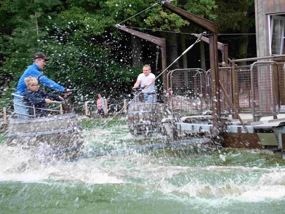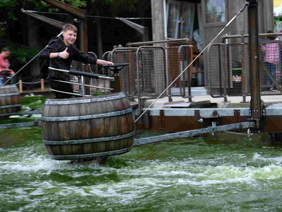 Den ganzen Tag über entdeckten die Mädchen und Jungen immer wieder etwas Neues, ließen sich in Fässern durchs Wasser driften und vom Kuh-Breakdancer durchschütteln, begegneten Dinosauriern und Märchenfiguren und kehrten zum Mittag in der Westernstadt ein, um sich mit Pizza und Burger zu stärken, bevor es wieder auf Erkundungstour ging.