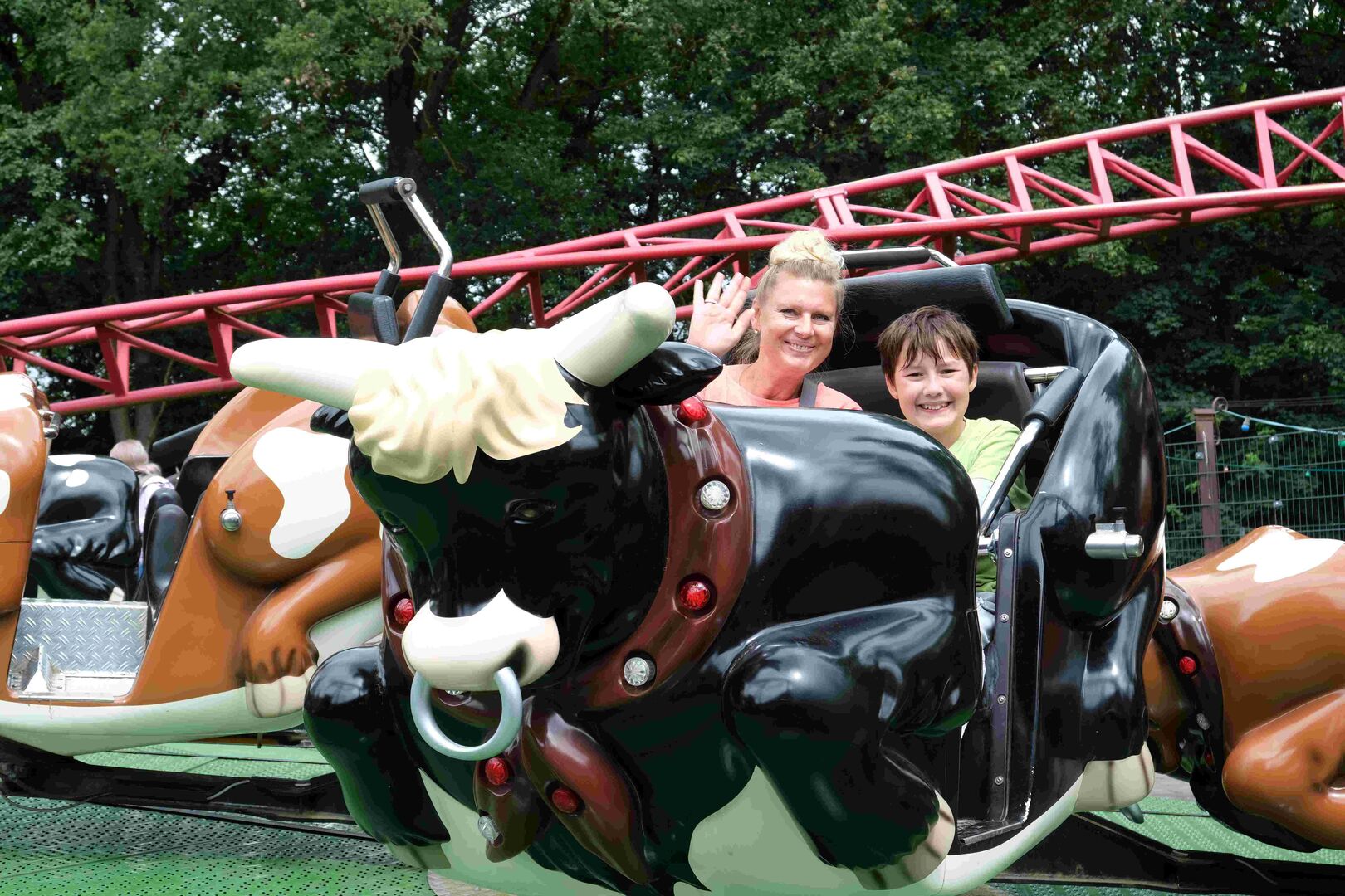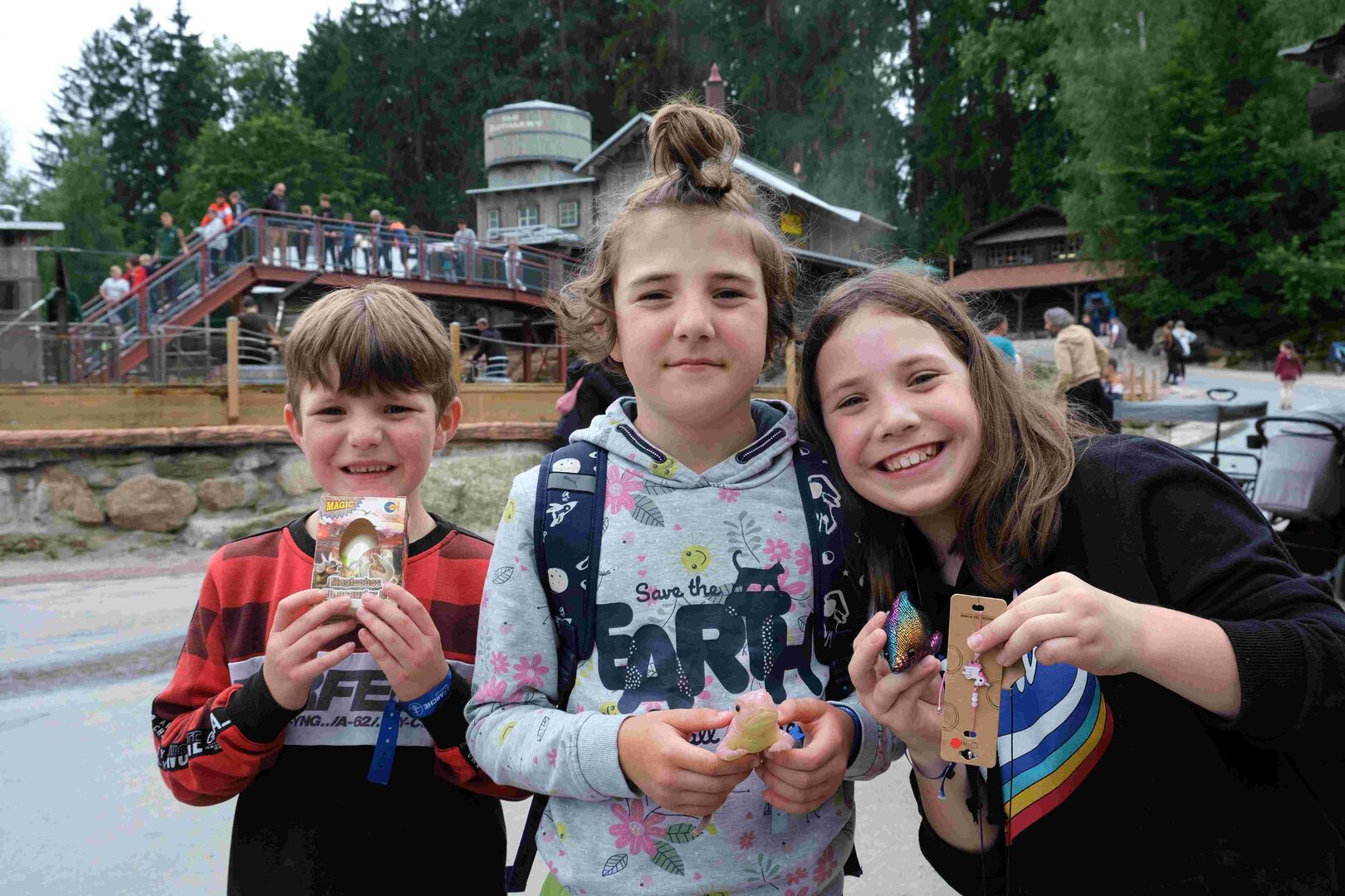 In den acht Themenwelten fand jeder von ihnen tolle Attraktionen: neben den insgesamt sechs Achterbahnen auch historische Eisenbahnen, verzauberte Häuschen und Kletterburgen, Rutschen (mit und ohne Wasser), echte (und künstliche) Tiere, sprechende Bäume, singende Brunnen und vieles vieles mehr.