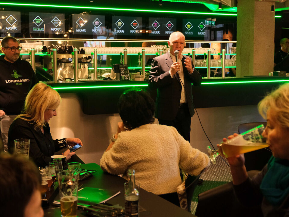 „Mit Herz & Hopfen“ hieß es am Samstag in der Lohrmanns-Brauerei im Dresdner Kraftwerk Mitte. Die Lohrmanns-Freunde, ein Stammtisch der ersten Stunde, hatten Freunde und Bekannte zum Schwatzen, Trinken und Schlemmen eingeladen und einen guten Zweck damit verknüpft: So haben die Lohrmanns-Freunde selbst gekellnert und ihr Trinkgeld für die Kinderarche Sachsen gespendet, 50 Cent pro getrunkenem Lohrmanns Bier sind ebenfalls direkt in die Spendenkasse gewandert.