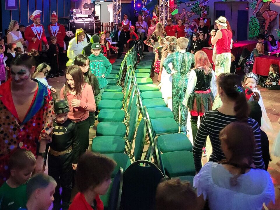 Neben dem obligatorischen Prinzenpaar grüßte auch ein Kinder-Prinzenpaar alle Gäste mit dem örtlichen Schlachtruf „Ekka-Ekka-he, he, he!“ Spannend wurde es bei der „Reise nach Jerusalem“. Am Ende ergatterte ein Mädchen aus unserem „Haus Kleeblatt“ in Kamenz den letzten Stuhl und gewann damit den Basketball für unsere Einrichtung. Doch niemand musste traurig sein, denn alle durften sich über leckere Pfannkuchen freuen.