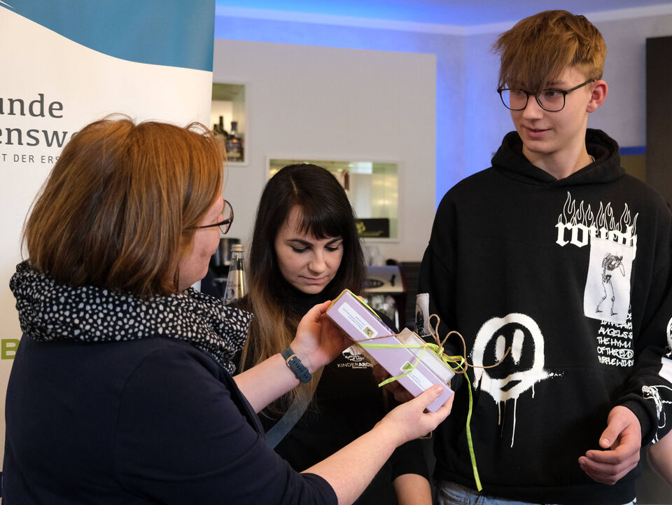 Kinderarche-Vorstand Matthias Lang dankte deshalb herzlich der Vertreterin vom Verband der Ersatzkassen, Anke Weber, und der Vertreterin der DAK, Yvonne Reißig, für ihre großartige Unterstützung des Projektes. Zum Dank für die Kinder und Jugendlichen, die sich mit Offenheit und Interesse auf das schwierige Thema eingelassen hatten und dabei auch so manches innere und äußere Hindernis überwinden mussten, ging es dann zum Essen ins Dunkle.