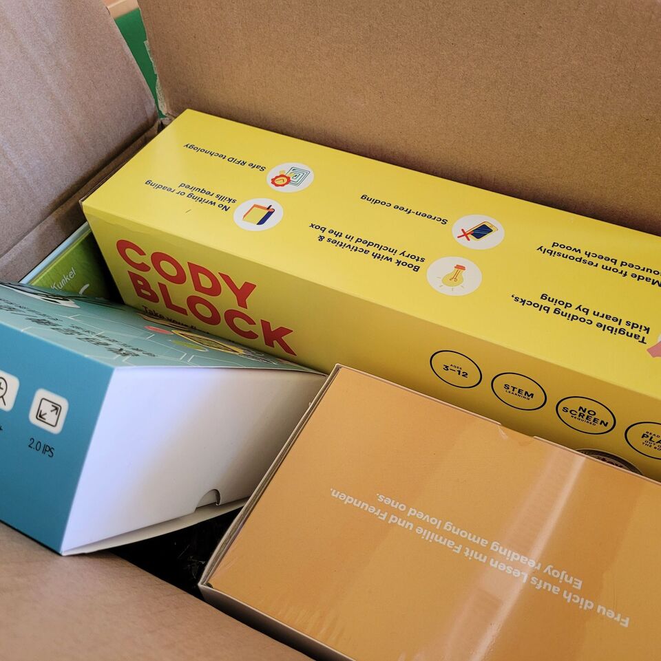 Aus der Mawi-Großlieferung haben alle 13 Kinderarche-Kitas verschiedene Produkte erhalten, die sie jetzt für medienpädagogische Angebote mit den Kindern nutzen.