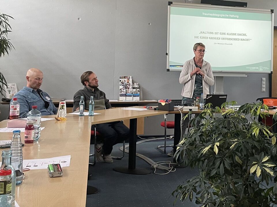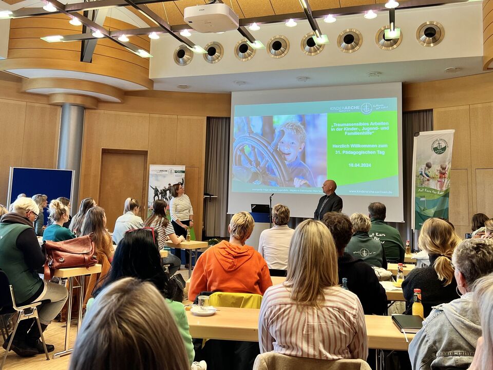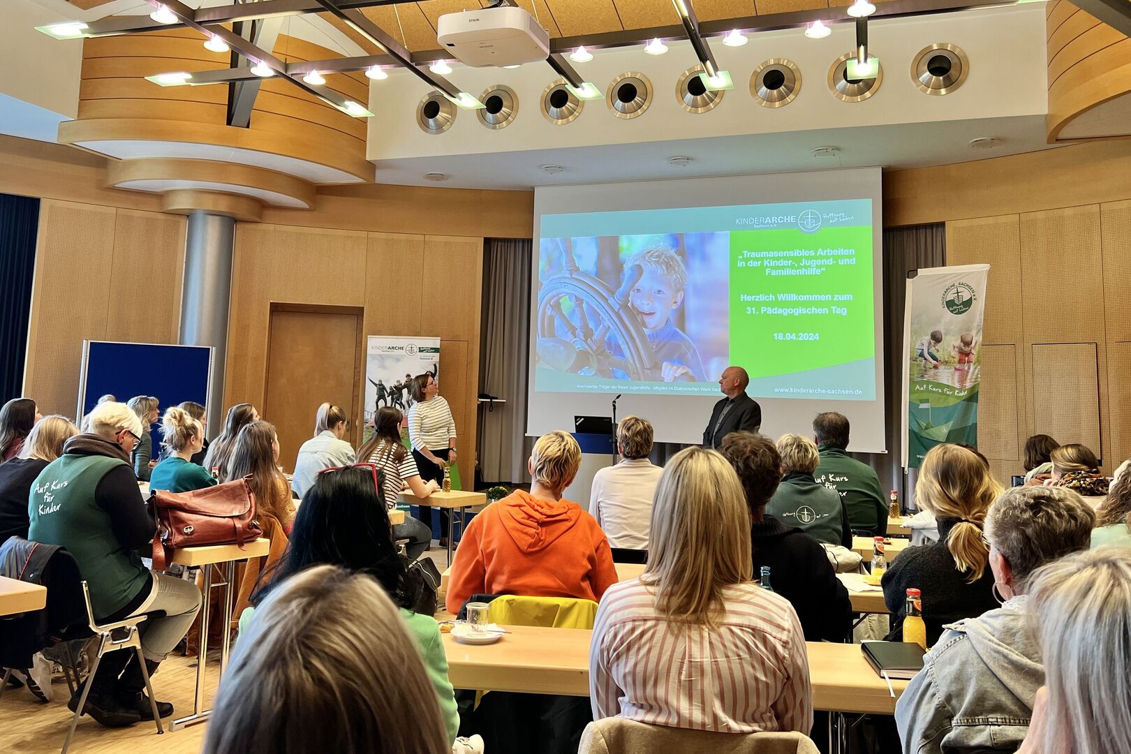 Einen ersten Impuls in den Tag gaben Kinderarche-Vorstand Matthias Lang und Fachbereichsleiterin Susan Gebhardt mit ihrem Vortrag zu traumasensiblem Arbeiten im Spannungsfeld zwischen Gesetz, Finanzen und pädagogischem Anspruch.