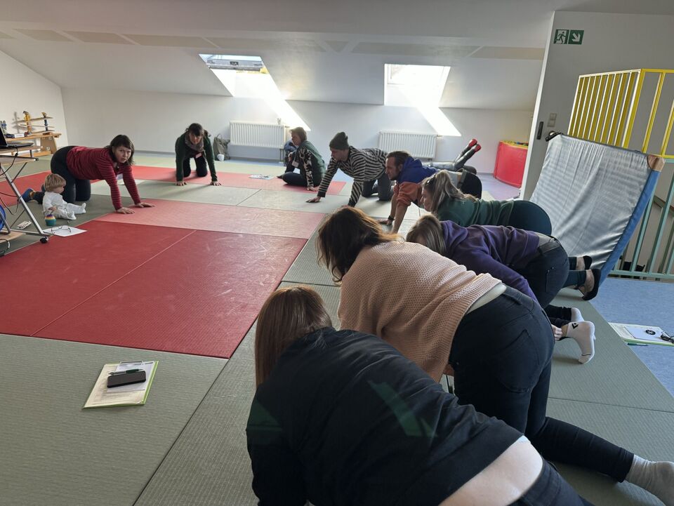 Nach einem Impuls durch unsere Kita-Fachbereichsleiterin Barbara Gärtner teilten sich die Fachtags-Teilnehmerinnen deshalb auf verschiedene Stationen auf. In der Ergotherapie tauschten sich die Fachkräfte über ihre Vorstellung zur Ergotherapie aus und erfuhren dann, was davon der Wirklichkeit entspricht. In der Physiotherapie war Mitmachen angesagt. Die Teilnehmer lernten robben, krabbeln, sich drehen, sitzen und sich an Gegenständen hochziehen. Im Bereich Frühförderung wurde u.a. das Testverfahren ET 6-6 R vorgestellt. Im Workshop Kinder- und Jugendpsychotherapie, den unsere Psychologin Grit Weisbach leitete, besprachen die Fachkräfte schließlich Wege zur ambulanten Psychotherapie und welche Methoden es zur Ressourcenarbeit gibt.