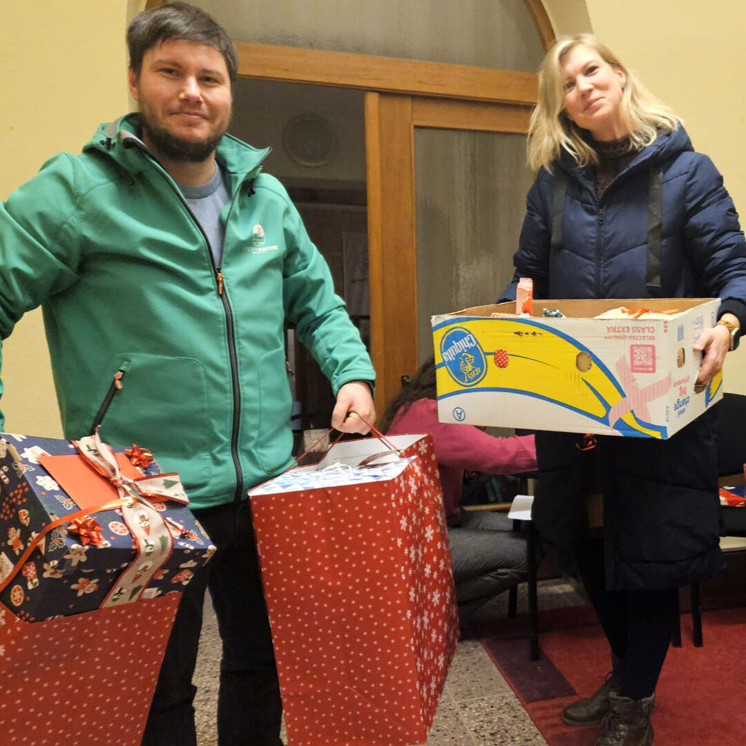 Nach Informationen und einem intensiven Austausch über die nächsten Schritte im Betrieblichen Gesundheitsmanagement ging es in die Geschäftsstelle in Radebeul, wo die Einrichtungsleitungen zahlreiche Geschenke aus vielen Wunschbaum-Aktionen in ihre Autos packten, um sie in den nächsten Tagen an die Kinder und Jugendlichen zu übergeben.