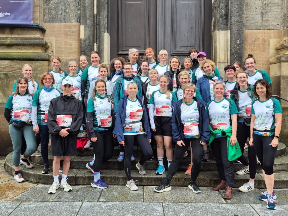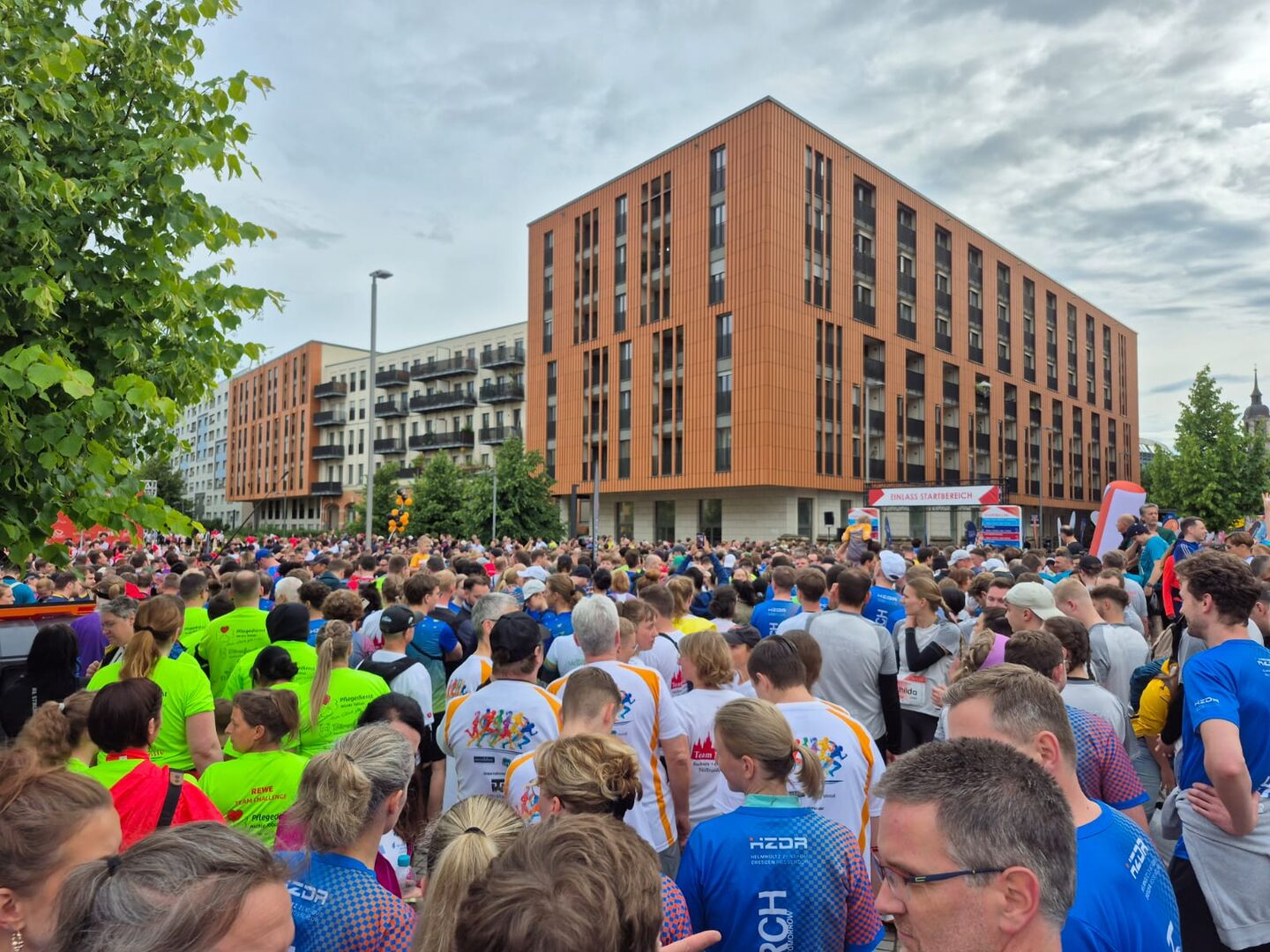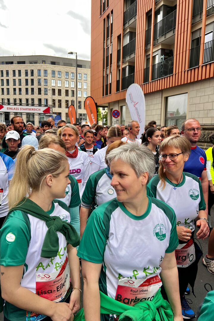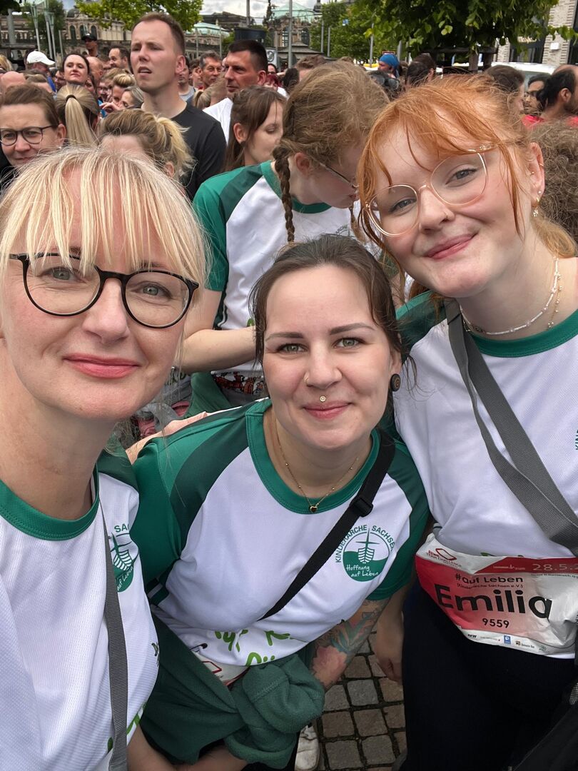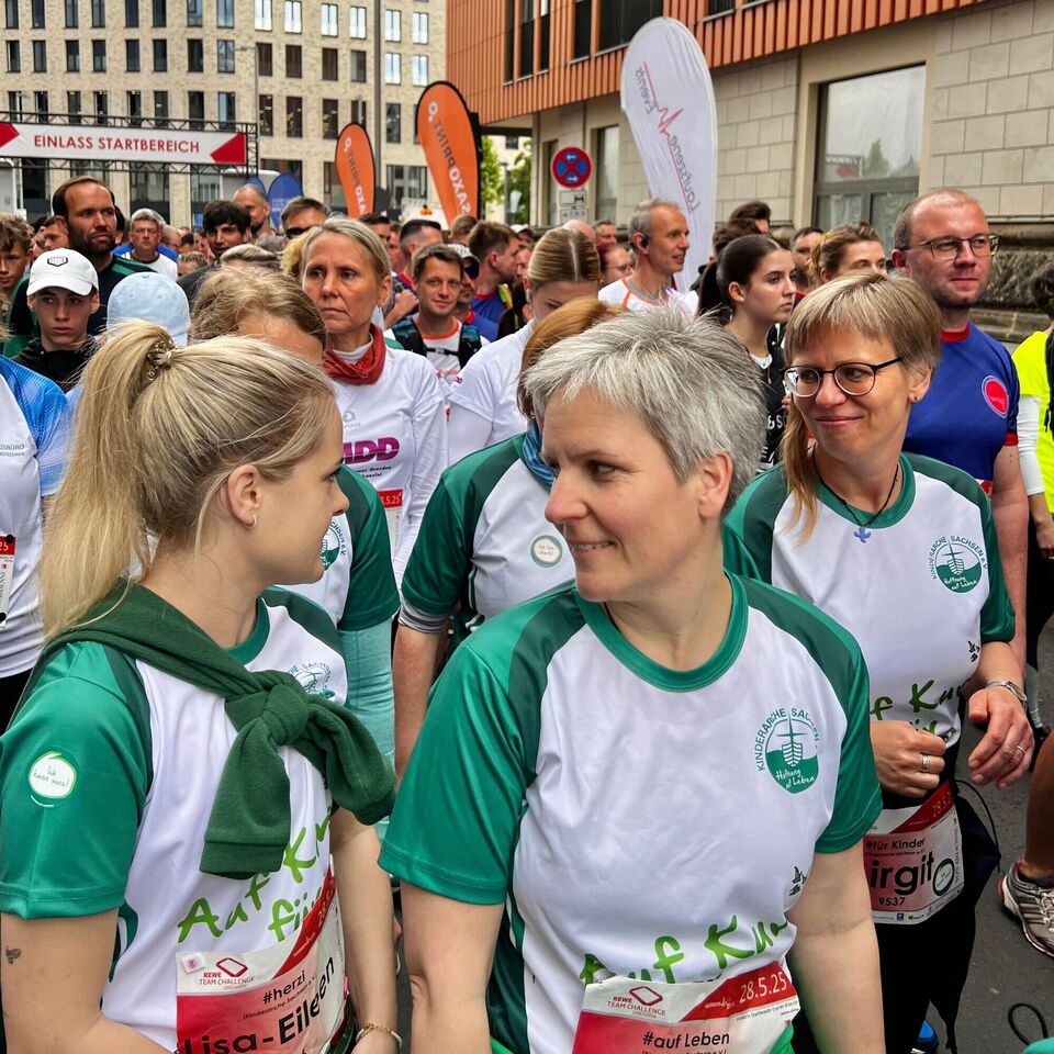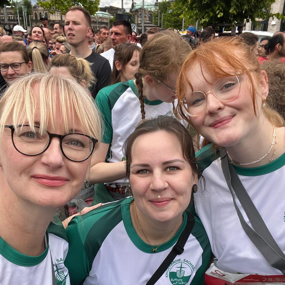 Mit einem starken Team aus 40 Läuferinnen und Läufern aus Kinderarche-Einrichtungen in ganz Sachsen sind wir ins Rennen gegangen – wenn auch erst 15 Minuten nach dem offiziellen Start, weil sich’s im Startbereich an der Annenstraße ordentlich gestaut hat.
