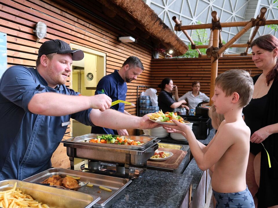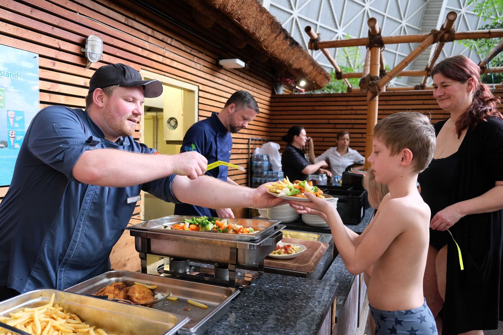 Und weil Toben hungrig macht, versorgte uns das Küchenteam im extra für uns reservierten Bereich des Tropino Restaurants mit den Lieblingsgerichten der Kinder: Schnitzel mit Pommes und Makkaroni mit Tomatensoße – ein voller Erfolg!