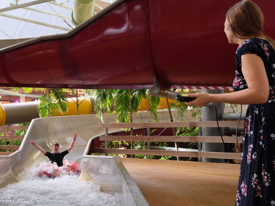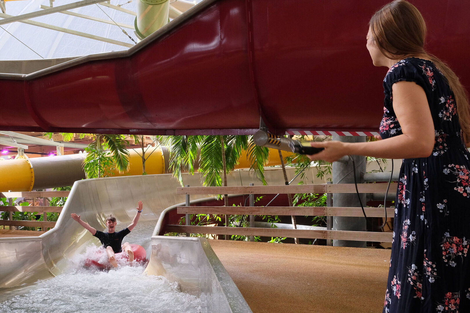 Nach dem Gruppenbild gab es für die Kinder kein Halten mehr: Die Größeren lieferten sich wilde Rutsch-Duelle im Double-Racer, während die Kleinsten am Kraki-Beach planschten.