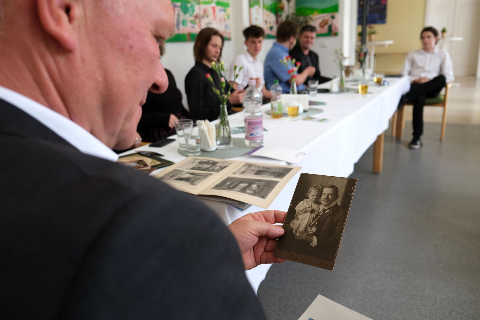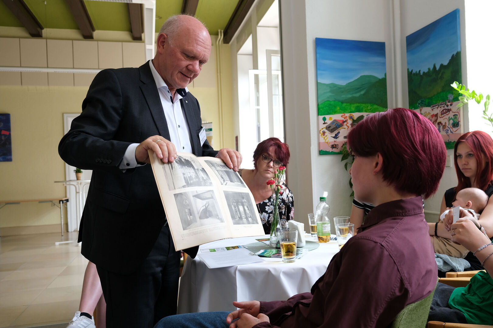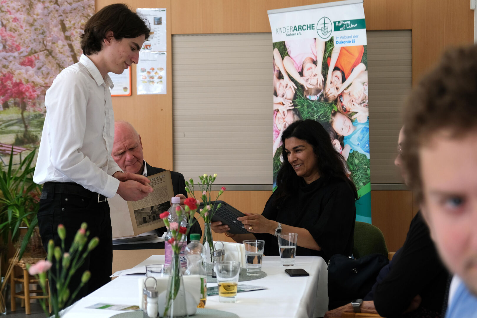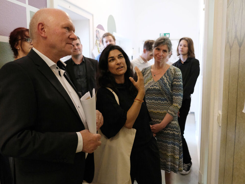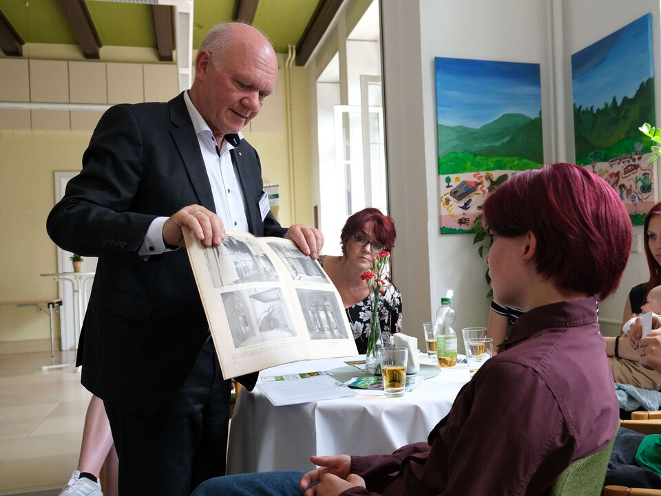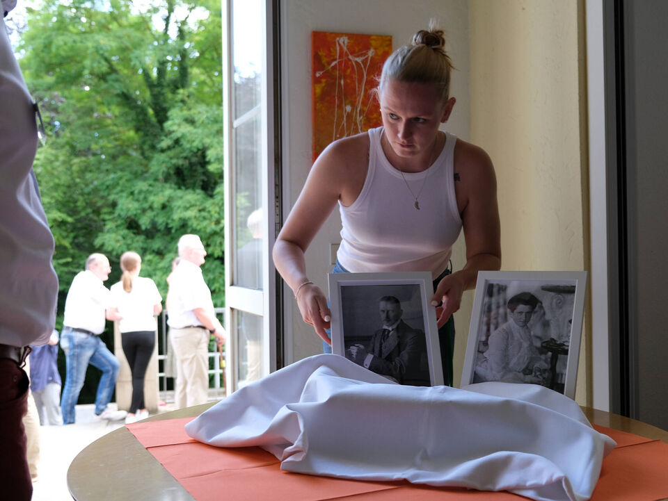 „Ich freue mich sehr, dass wir mit der Veranstaltung heute einen Bogen über mehr als 100 Jahre schlagen“, betonte Kinderarche-Vorstand Matthias Lang in seiner kurzen Rede. „Wir gedenken der zwei Menschen, die diesem Haus zu Beginn des 20. Jahrhunderts seine Form gegeben und hier zumindest zeitweise ein glückliches Zuhause gefunden haben. Und wir tun dies gemeinsam mit den jungen Mädchen und Müttern, die heute in diesem Haus ein Zuhause finden und es mit kunterbuntem Leben erfüllen.“