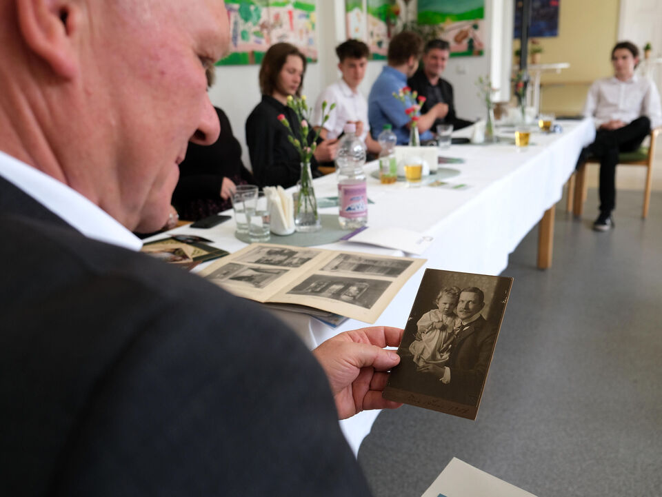 Wie dieses Leben aussieht, das erzählte Marie aus der Wohngruppe in ein paar kurzen Worten, davon konnten sich die Schüler des Lößnitzgymnasiums und Nina Wach aber schon vor der feierlichen Stolperstein-Übergabe selbst ein Bild machen. Die Enkeltochter des jüngsten Bruders von Felix Wach war extra nach Radebeul gekommen und hatte auch Zeit für ein Gespräch mit den jungen Menschen und einen Rundgang durch das Haus ihrer Vorfahren mitgebracht. Es war für beide Seiten spannend zu erfahren, welche Erinnerungen Nina Wach an ihre Tante Susanne Heigl-Wach noch hat und wie wir nach der Wende mit dieser Tante in Kontakt getreten sind.