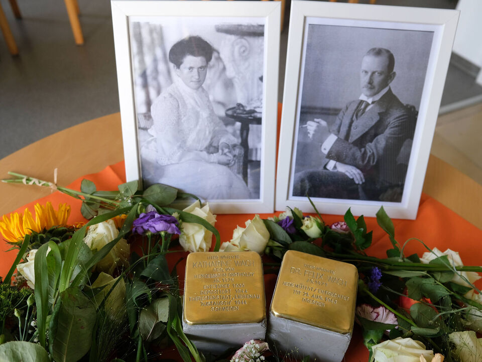 Zwei Stolpersteine für Katharine und Felix Wach